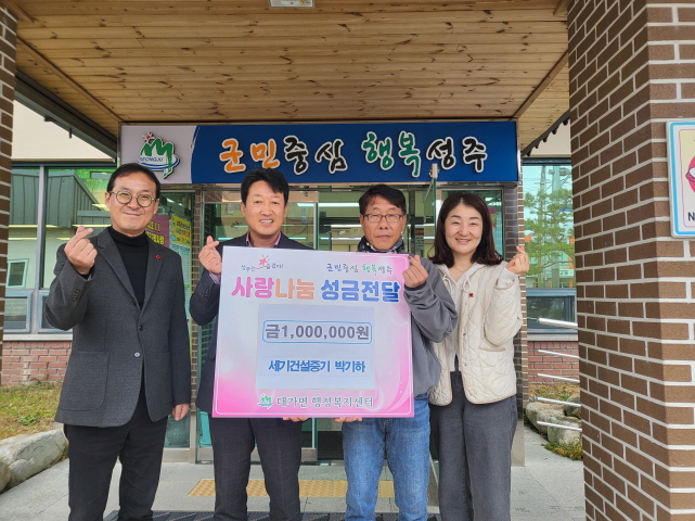 세기건설중기 박기하 대표 희망2025나눔캠페인 100만원 기탁![]() 【경상포커스=전상철기자】성주군 대가면 세기건설중기 박기하 대표는 3일 대가면행정복지센터를 방문해 희망2025나눔캠페인에 성금 100만원을 기탁했다.