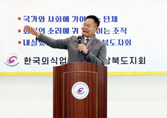 김재욱 군수,“송년회 제발 하세요…서민경제 살려야”![]() <사진> 김재욱 칠곡군수가 지난 19일 한국외식업중앙회 경북도지회 개소식에 참석해 서민경제 회복을 위해 공직자와 지역사회의 연말 모임 개최를 호소하고 있다.