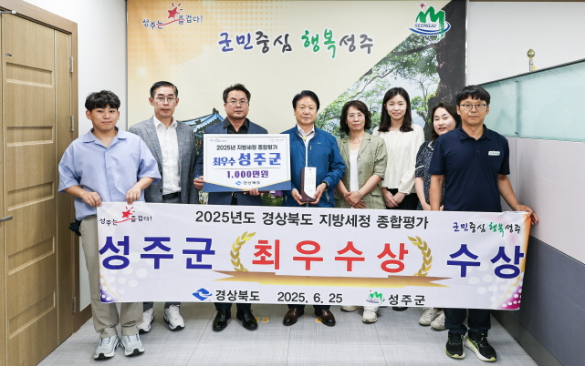 【경상포커스=전상철기자】성주군(군수 이병환)은 25일 경북도 주관 2025년도 지방세정 종합평가 시상식에서 22개 시·군 중 ‘최우수상’을 수상해 기관 표창과 함께 시상금 1,000만 원을 수여받게 됐다.