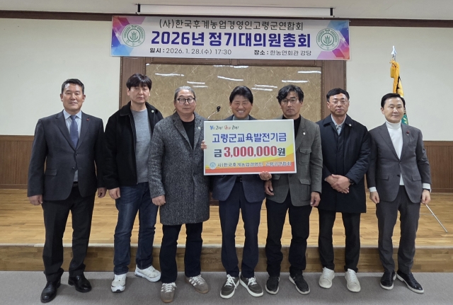 (사)한국후계농업경영인 고령군연합회, 교육발전기금 기탁![]() 【경상포커스=전상철기자】사)한국후계농업경영인 고령군연합회(회장 이덕봉)는 28 고령군후계농업경영인회관에서 개최된 ‘2026년 한국후계농업경영인 고령군연합회 연시총회’에서 지역의 교육 발전과 인재 양성을 위해 사용해 달라며 교육발전기금 300만원을 기탁하였다.