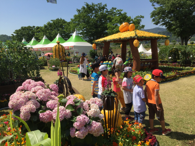 성주군농업기술센터는 “세종이 선택한 생명의 땅에서 자라는 참외”를 중심으로 박과류, 초화류 등 다양한 식물을 활용해 이색 포토존으로 조성하고 신품종 기능성 참외 전시관, 참외형상 대형 조형물 등으로 다채로운 공간을 구성하고 있다.